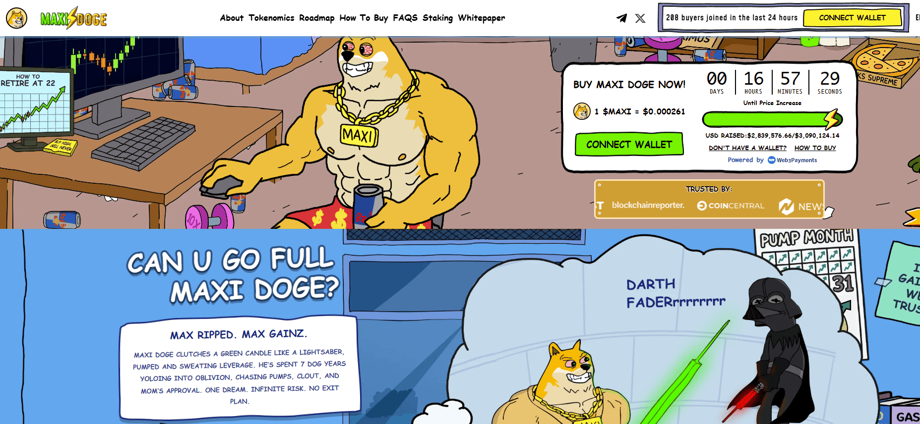 2. Maxi Doge ($MAXI): The most extreme Gym-Bro Meme Coin for 1000x Leverage Degens