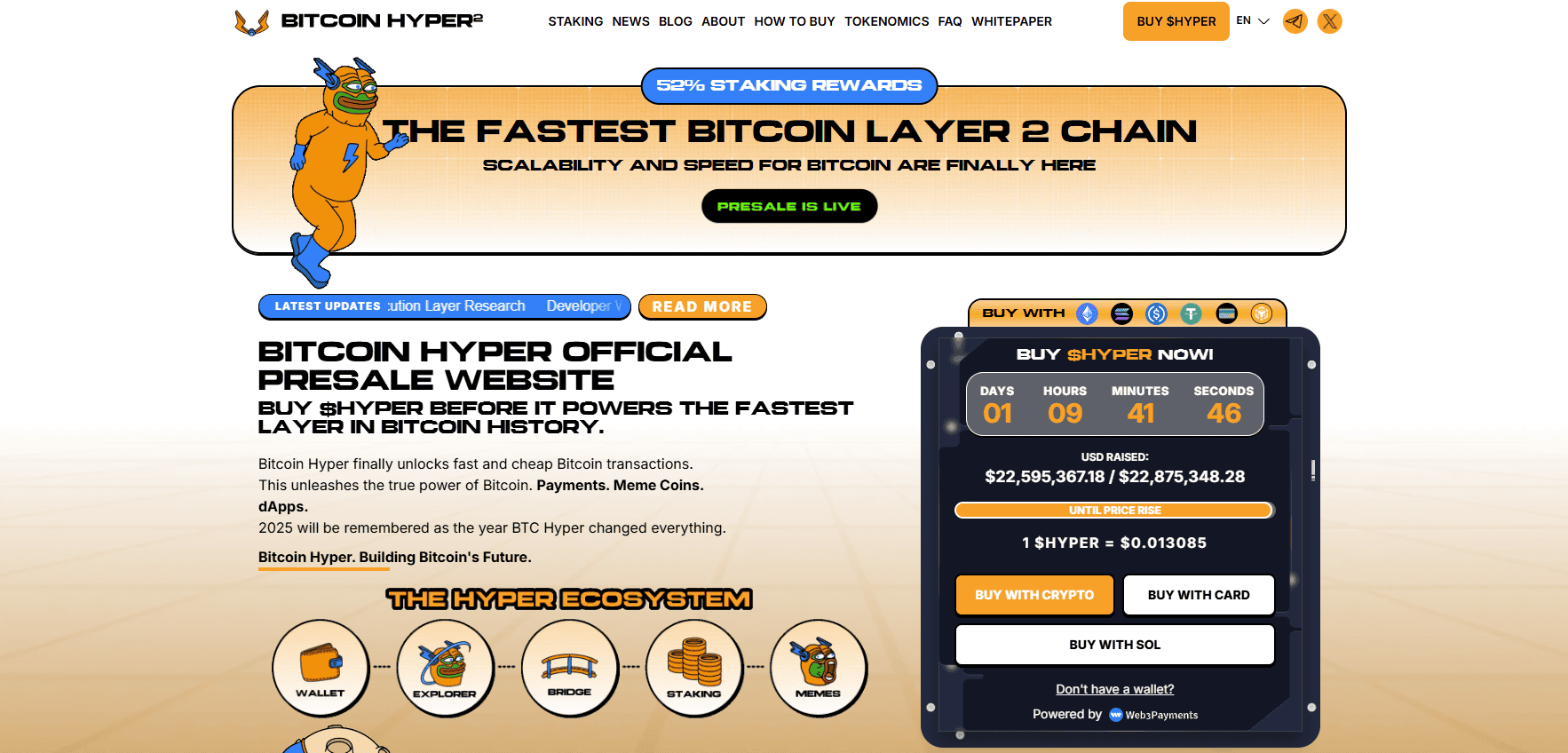 1. Bitcoin Hyper ($HYPER): Bitcoin’s FIRST L2 for Fast, Low-Cost Transactions with DeFi Integration