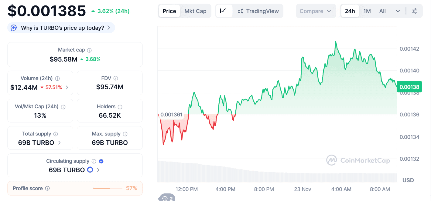 Turbo Coin Price Today: Slowing Momentum and Heavy Sell Pressure